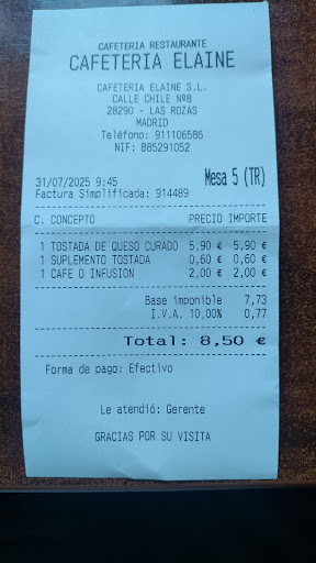 Read moreEl peor desayuno...pedí huevos fritos con rodajas de tomate y jamón, pues bien, el jamón era todos los bordes del tocino que le sobrarían, de vergüenza, el café le dije cargado de café y eso era leche manchada. Las 10 de la mañana y el pan tostado que le pedí me lo cobro fuera de desayuno y no solo eso, el precio del café 3 euros en un paque empresarial , supuestame para gente obrera, que ni en la Castellana me lo cobran🤦.2 desayunos por más de 20 euros😳, lo pago , pero no me des tocino, pon jamón porfavor, que sinvergüenzas,...