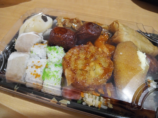 I took it back to the hotel room where I'm staying. The box of food contain a mixture of cold sushi and hot food. They were all pretty good so I was happy with the food. If by any chance I come pass this area again. I might consider coming for a full sushi...