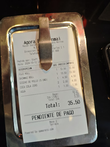 Read morePedido a domicilio.Tardo una hora y media un día entre semana. Caro e insípido. El salmón del pan bao no se ve, solo hay ensalada. Bolws sin la salsa, trae arroz blanco pasado y cuatro cosas sin más. El sushi sin fuste. No es para dañar, es una opinión. Debéis aceptar las críticas igual buenas que malas. Si no lo he podido diferenciar es porque no había atún ni salmón. Se podía intuir algo pero solo había ensalada....