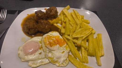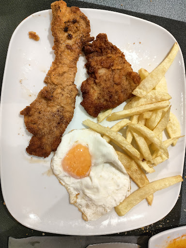 Read moreMuy mala experiencia. El bar prácticamente vacío 40 minutos para los calamares 15 para una patatas Ali Oli y después pasados 10 minutos nos trajeron los platos. Juzgar vosotros mismos pedimos ESCALOPE y lo que nos trajeron parecían las sobras de la cocina empanadas... A su favor tengo que decir que de sabor estaba bueno. La 2 ración de pan durísima de hace días... Y la jarra de agua llena de grasa y sucia.... Desde luego que no...