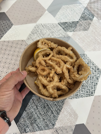 El fin de semana pasamos a encargar una ración de rabas, como pensábamos que nos quedaríamos cortos nos dijo su propietario que pidiésemos una y media, la sorpresa fu e cuando las recogimos para llevar, 10€ la ración, con lo cual pagamos 15€ en total, la pusieron en dos recipientes y daban pena…..la cantidad era irrisoria, la foto es de la ración y media metida en un solo recipiente, antes de ir recomiendo mirar otras...