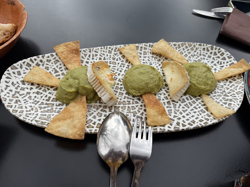Pedimos el guacamole casero con queso de cabra y anchoas , el cuál se les olvidaron ponerle las anchoas , el camarero se dio cuenta y nos las trajo después . El guacamole no era gran cosa , el queso de cabra si estaba muy rico y tenía buen contraste al estar caliente . Las anchoas desmerecen mucho el plato , probablemente son de las peores anchoas que he comido .