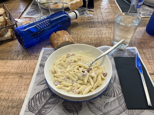 La verdad es que sentimos que se rieron de nosotros, es el resumen de la reseña, y paso a contar por qué. Llegamos a comer 18 personas, a las 14:30h de un miércoles cualquiera, habiendo avisado que íbamos. Para comenzar, al tomarnos nota, nos dijeron que espaguetis carbonara no había para todos, que pondrían macarrones para los que no les llegasen los espagueti, y cachopo de segundo sólo tenían 7, y estábamos pidiendo 10, a los demás les ofrecería otras alternativas. Finalmente nos sacó cachopo para 10 (claro, ahora verás de qué manera) y con los espaguetis/macarrones pues lo que nos dijo, a unos espagueti, y a otros macarrones. Los cachopos vinieron como veis, con el pimiento encima (de bote, simplemente especificarlo; no como en fotos de otros clientes aquí en las reseñas del local, que lo llevaba dentro), y la carne del cachopo preguntamos, insistiendo, y nos aseveró que era ternera, cuando se veía una carne blanquecina que más podía parecer, tanto por aspecto como por sabor, a lomo de cerdo, pero estaba en sus trece de que era ternera... Para colmo era de tamaño como un escalopín, junto a otro trocito (lo que se ve en la foto, vaya). Con respecto a lo comentado al principio reseñar que luego vimos cómo sacaban a clientes que había llegado después de nosotros tanto cachopo (que supuestamente no había más) como espaguetis carbonara (que tampoco quedaban, que tenían que ser macarrones; pues siguieron sacando espaguetis...). La espera entre los primeros y los segundos fue excesiva, pareciera que fuimos a comer a una boda mal organizada. Como positivo hacer mención al local, que está bien decorado y ambientado, con el comedor a doble altura, y que los postres nos estuvieron buenos sin tener que reseñar nada de ellos, y los baños limpios, y nos atendieron con una sonrisa. Como conclusión, está claro que no volveremos, ni como grupo ni individualmente, no es de buen gusto saber que te están engañando y poniendo la buena cara, lo siento mucho pero nuestra realidad fue esa.