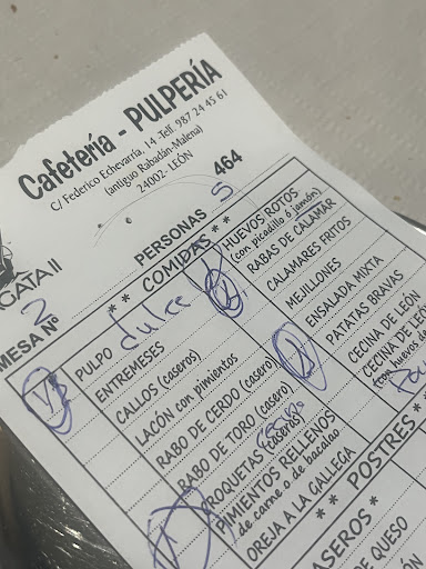 Pulpo peludo. UN SITIO AL QUE NO VOLVER JAMAS. Después de que al llamar para reservar la que me cogió el teléfono me colgó casi a los dos segundos era un aviso de lo que podía ocurrir después. Fuimos un grupo de amigos en un ambiente distendido en el que el camarero trataba de ser gracioso y agradable igualmente pero hubo un momento en el que nos dijo q le gustaría saber donde trabajamos para ir el allí a molestar… hay que saber en que momento se hacen gracias y en que momento estás fuera de lugar. Pedimos unas raciones para compartir, las croquetas muy buenas, las rabas de bolsa congeladas muy aceitosas, pero cuando llego la ración de pulpo fue ya el colmo… Nada más llegó la ración quitamos TRES PELOS LARGOS NEGROS, los retiramos y seguimos comiendo pensando q tampoco era para tanto, pero cuando llevábamos media ración ya habíamos quitado más de ocho pelos… cuando llegó el camarero le dijimos q no lo íbamos a comer y le explicamos el porqué, retiró la media ración y vino la dueña poco más que a mirar a ver de q color teníamos el pelo por si los habíamos puesto allí… que como no lo habíamos dicho antes porque ella ahora ya no sabía si era verdad… cuando había una patata con un pelo impregnado de aceite y así se lo hicimos saber. Lejos de un simple perdonar esto no suele pasar, casi le tuvimos q pedir perdón nosotros. En fin, ración bien cobrada, sin acabar… y bien cobrado todo. Ni un detalle de invitar al menos al café, o al agua vaya… una pena. Dejo foto del ticket con el pelo que quedo por la mesa, menos mal q éramos todas rubias y los chicos tenían el pelo más...