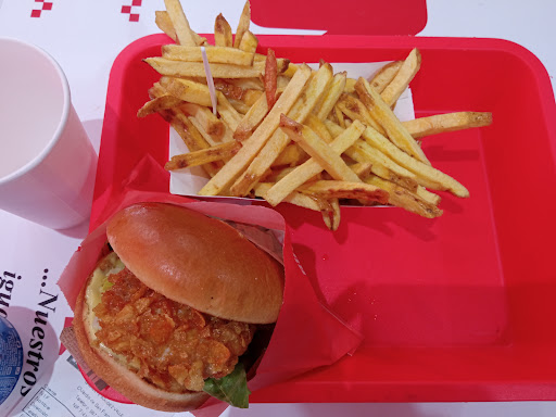 It's a good attempt at recreation of the American drive thru in Spain. They mis some marks though. The burger was a bit under cooked and the hot dog has WAY too much cheese. The fries are the redemption for this place as they are fresh cut then fried. The music is excellent early to mid 90s rock and roll. If your an expat and hankering for home, skip it except for the fries. Very In&Out...
