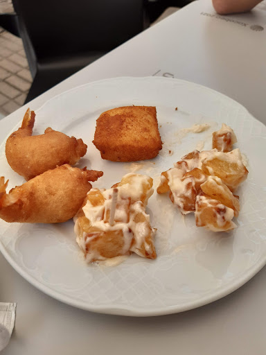 He acudido ya en varias ocasiones, y me sorprende que la tapa se hace en el momento, y hay unas croquetas muy buenas, calamares rebozados (rabas), tortilla, gambas a la gabardina, o queso. Todo muy bueno. También ofrece buenos batidos, y el café gustará a los muy cafeteros.