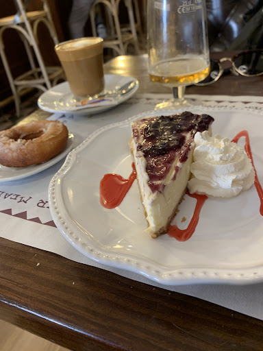 Long bar, like something from downtown Chicago, sweets, brunch if you like... I like the staff and eating ice-cream at 2am Friday Saturday or Sunday is the kind of thing we should all consider doing more than once in our life especially when it's sub zero and a wine is threatening dry reachin' with the alioli.or whatever...right midway behind the sternum...only Irish cider or car battery acid could dare hold a candle.. Come on how many people in this world suffer just to keep the foot amongst the norm.."look at me"...the other foot hiding.. Strawberry ice-cream... -5° outside and silence that acidic mix whatever it is.... Because you know well when you go to lie down your eyes won't close with that excruciating acid... Ice-cream tío/tía at 2am... And 40 winks not pointless 440 w 'a_ _' s with indigestion begging the Gods of snooze for an ice-cream delivery at the 4am pre permanent pre brando fame....