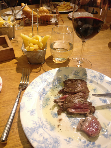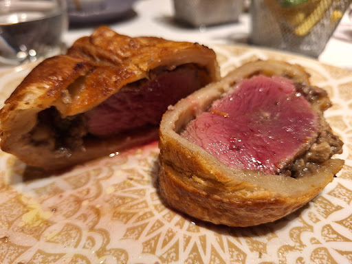 Read morePara nosotros se ha convertido en un habitual al visitar León. Muy difícil decidirse entre todos los platos que ofertan. El local es pequeño, bien decorado y agradable, aunque esta última vez hemos tenido algo de mala suerte: primero, decir que había muchísimo ruido, no sé si es por la propia acústica del local o por el gallinero que tenían formado entre todos los comensales o las dos cosas, pero al final nos vimos hablando casi a voces, cosa que no es agradable. Y en segundo lugar, a mi pareja le tocó sentarse justo debajo de un foco y pasó un calor criminal hasta que pusieron el aire acondicionado (afortunadamente nada que no se solucione rápido). Los platos otra historia, disfrute absoluto. Quisimos compartir la cecina y los Puerros confitados con Arzúa-Ulloa y gambas al ajillo, brutales, menuda delicia. Después teníamos reservado el Solomillo Wellington (en web recomiendan resérvalo 24h antes), y sí, estaba muy bueno pero quizá no tanto como la última vez que lo probamos allí, esta vez había poca pieza de carne en comparación con la costra de hojaldre, que era algo excesiva y además se había quedado un pelín crudita, pero aún así lo disfrutamos enormemente. De postre vimos que tienen el Soufflé Alaska, un postre del que hemos oído hablar muchas veces pero nunca habíamos tenido ocasión de probar, y desde luego no decepciona (lo dice una que no es dulcera en exceso), consta de base de bizcocho y una pequeña cantidad de macedonia de fruta, helado de vainilla en el interior todo esto cubierto por merengue flambeado con ron, muy buen resultado y la atención de los trabajadores es...