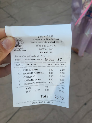 Read moreHe visitado este local ubicado en León por primera vez. Esta gran cadena hostelera que presta sus servicios en muchos pueblos y ciudades a lo largo de todo el territorio nacional. No he tenido la ocasión de comer o cenar, solo he pedido una cerveza y una tostada con tomate, aceite y sal. Mi sorpresa es cuando el camarero me pone delante algo muy diferente a lo esperado, sólo el color denotaba que aquello no era lo que yo había pedido. Lo huelo, huele a ajo. Lo pruebo, sabe a ajo. Me dirijo al camarero, me asegura que es tomate. Me levanto y me dirijo a la barra y pregunto. Seguro que es tomate? O tal vez esto es salmorejo. Es salmorejo, si. Lo siento, se lo cambio en seguida. Bueno!! Esta bien disculpado el error. No pasa nada. Hasta el mejor escribiente tiene un borrón. El buen trato y la excelente atención me...