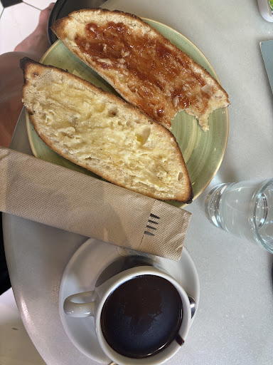 The waitress didn’t care about what I wanted. I asked for toast with the tomato sauce which is traditional for Spain. She brought me jam. I can have this in any country and didn’t want jam. I asked for hot chocolate and instead she brought me this thick cup of melted chocolate I couldn’t drink. I said something to her and she didn’t care. So I had to use one piece of toast to dip in the chocolate.