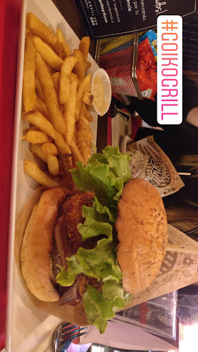 Fui de visita con unos amigos que conocían Goiko para una cena de amigos informal. Un acierto. El ambiente bastante relajado incluso siendo un sitio de tamaño mediano, los comensales mantenían un tono de voz bajo y confidencial, y se lo atribuyo a los tonos de luz oscuros del local, que lo hacen ser más acogedor, privado y menos un "lugar de fiesta", lo cual agradezco para una cena con amigos. Pedimos unas hamburguesas con patatas, y bebida (caña para algunos, margaritas para otros). Aunque las bebidas no me parecieron nada del otro mundo, me gustó mucho la hamburguesa. La carne me supo a carne buena, algo muy muy poco común hoy en día, y los ingredientes restantes parecían todos bastante frescos y eran sabrosos. Disfruté mucho, la verdad, incluso siendo una "simple" hamburguesa, así que agradezco a la gente del local el trato de sus productos. Es realmente lo que más le convence a la gente que os visita, aunque no os lo parezca, así que nunca deberíais descuidarlo.