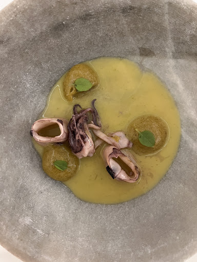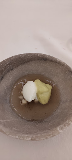 Read moreReservé para comer y escogimos el menú largo del menú degustación. No había estado nunca pero las opiniones y un reportaje en TV parecían indicar que la visita sería memorable. Y desde luego lo fue. Acompáñanos el menú con un tinto de Bodegas Atauta, que a tenor de los platos de otoño, le iría genial y no nos equivocamos. Antes de comenzar los pases nos pusieron una mantequilla de oveja con sabor de "antaño" ;) muy potente para mí pero sabrosa.Comenzamos por los entrantes, taco frito con trufa, muy goloso; el paté de morcilla delicioso con su textura crocante; el Sour de remolacha muy "curioso" con el amargo del café y para el escabeche del día, mejillones con una especie de salsa de tigre. Muy ricos. Hasta aquí los fríos. Para calentar el estómago teníamos el huevo y la croqueta de guiso, ambos deliciosos pero advertimos que es mejor dejarlos enfriar un poco ;). Para el segundo tiempo como indican en su carta, primero un puerro de Sahagún de calidad excelente, pero aún mejor era el fondo del plato. De lo mejor del menú. A continuación las patatas importancia con boletus y oreja, otro imprescindible. En el tercer tiempo tocó pescado del día y en este caso fue un sangacho de atún con un acompañamiento tipo escabeche pero en caliente. He de decir que no soy muy fan de esa parte del atún pero el plato tenía sentido y estaba bueno. A continuación era el momento de la carne. En este caso del pato tocaban las mollejas y junto con el apionabo más la berza "crispi", el plato quedaba redondo. En cuanto a los postres, muy ricos ambos. La pera muy refrescante y la manzana extremadamente golosa. Para terminar el "té", que no revelaré de qué se trata😉. En relación al trato y demás, poco que añadir con respecto al resto de reseñas: atentos, diligentes y muy profesionales. A nuestro favor quizás tuvimos que, coincidencia, el dueño es del pueblo al lado del que veraneaba aunque estoy convencido que tratan igual a todo el mundo. El precio... 133€ con la bebida. Experiencia para repetir y no tardando.