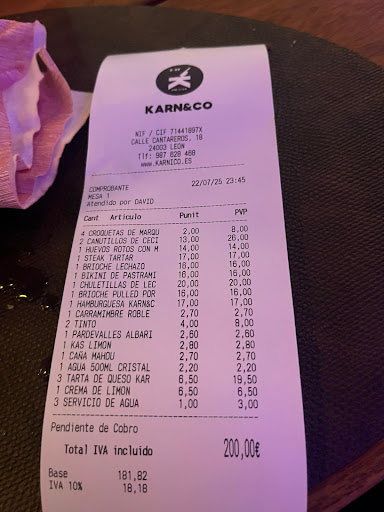 Read moreHoy un grupo de 7 personas, fuimos a cenar por primera vez al restaurante. Todo iba bien, pedimos para compartir, un plato para cada uno con sus respectivas bebidas individuales (más 3 vasos DE AGUA DE GRIFO) y postres. Sin embargo, llego la sorpresa cuando pedimos la cuenta, nos habían cobrado el SERVICIO DE AGUA. Como bien se sabe hay una ley que PROHÍBE ese cargo. Además, según la OCU, la organizacion de consumidores y usuarios, se podrá beber agua de grifo gratuitamente. No es solo que lo hayan dicho y este aprobado, si no que es algo necesario y básico en una comida. Entiendo que si solo pides vasos de agua sea un fastidio y perdidas, pero es que cada uno se pidió una bebida. Me parece algo de lo que se aprovechan aún y en León no me había pasado NUNCA hasta ahora, encima con un restaurante nuevo. Se lo dijimos al camarero y su argumento fue que claro lo servian, manchaban un vaso y lo tenían que lavar. Muy bien ¿Y que quieres que entre yo dentro de la barra a beber? O ¿Donde me pones el agua, en la mano? Argumento sin sentido, vas a un sitio donde necesitas la cubertería. Cosa que ya te meten en el precio en muchos lados por su uso, vale. Que tengo que hacer yo como cliente ¿Llevar mis cubiertos, platos y vasos pa evitar que nos timen de esa forma y se aprovechen de algo que es necesario dentro de ese servicio? ME PARECE VERGONZOSO y no por tener que pagar X míseros euros sino por principios, por la clara ilegalidad, por intentar que no nos tomen por tontos, en definitiva por ser justos. Cada trabajo tiene su ventaja y desventajas pero no hay que aprovecharse de los demás y reírse de ellos, porque es lo que me parece. Te dejas 200 euros y aún así eres el tonto que sigues pagando por todo sin poder quejarte o peor aún que no te hagan caso. Además postre quemado, tuvimos que quitar la capa de arriba porque estaba negraaa literal. Pa eso solución fácil y se come aún así sabía y tenía regusto a quemado, pero buenoo... (Valoro el servicio, lo demás no entró en opiniones ni positivas ni negativas, solo la falta de ética que han tenido y tienen en los demás restaurantes...