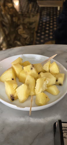 Me llevaron para que conociera un sitio bonito" ", elegante, quizás un poquito por encima que el resto en precio, pero que era diferente. Lo que vi; Si quitamos ese árbol con mono y cadena incluida, un sitio con una decoración exquisita, me gustó mucho, en cuanto al servicio, tienes que ir a la barra a por tu consumición y tapa, el ir es lo de menos, se entiende, solo que te despachan como si en el mostrador de un ministerio público te encontraras, lo peor; la tapa, miren señores, los clientes, sabemos sobradamente, que la "tapa" es una "cortesía " del hostelero, que es un gran sacrificio y yo personalmente "estoy agradecida " a esos sitios que visito y son generosos por su tapa, pero en este caso, no haga usted el sacrificio si me va a poner las patatas que se ven en la foto, no porque quedaría mejor si no las pone, porque el no cobrarlas no lo hace más generoso si me va a poner patatas sin limpiar. Luego mi conclusión es, este sitio está rodeado de sitios, que no tienen esa decoración exquisita pero: son amables, te dicen buenos días, su tapa sencilla está elaborada intentando lo mejor, van parecido de precio ¿porqué tengo que volver a este sitio? Pues habiendo sitios que trabajan tanto por intentar dar...