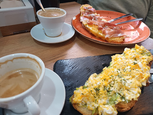 Queríamos probar la tortilla ya que somos bastante asiduos en desayunarla y ver cómo era para venir otras veces y a las 12:30 no tenían ya tortilla.. nos quedamos con las ganas. Las tostas de tapa si están ricas pero justo la que le pedimos tampoco le quedaba.