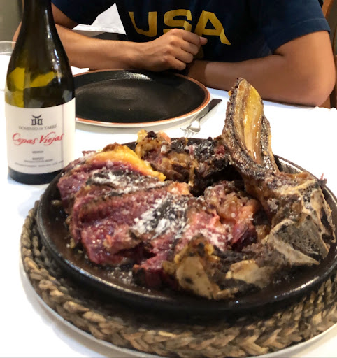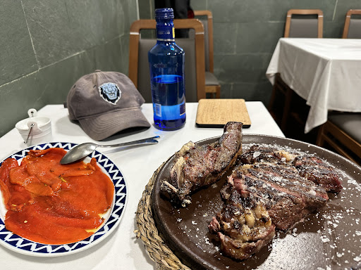 I just enjoyed one of the best grilled steaks of my life at this tucked away place… small dinning room is understated but the food was overstated, delicious. The aged Leones beef was absolutely delectable, perfect temperature and rich in marbled flavor and texture, cooked on a open wood burning grill. I had forgotten how incredible a meal of beef could be. I said a prayer for the cow who gave their life for my nourishment, what a notable experience on my visit to Spain from...