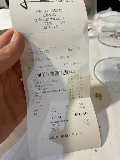 Read moreLa Parrilla Louzao no tiene misterio alguno, se provee de carne a través de una de las empresas cárnicas premium del país, la extrema calidad de la materia prima hace que pedir carne premium sea una acierto, si a eso, le unes destreza en el arte de la parrilla... ya sabes lo que va a ocurrir de antemano. No solo de carne vive el hombre, solemos ir varias veces en el año y siempre disponen de frutos de temporada como Esparrago Blanco preparado por ellos, Alcachofa a la parrilla, depende, estos entrantes van en base a la temporada de los mismos. La presentación de las mesas sencilla y de calidad, vajillas de sargadelos, menaje impecable, cristalería adecuada a los caldos que recojen, raciones en su justa medida y tamaño, una carta de vinos bien escogida con referencias medias altas que dan respuesta a cualquier comensal, y no olvidemos que es un sitio en el cual dos comensales pueden beber una botella de vino, ya que al estar en una zona tan céntrica y cerca de lugares para tomarse la última copa, café o infusión, no HAY PORQUE QUE COJER EL COCHE, cuestión muy, pero que muy...