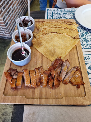 Read moreNos decimos a cenar en este restaurante por la variedad de productos de la carta y por la buenas reseñas, pero esto no se ajusta a la realidad, ya que un plato entre otros que teníamos pensado pedir no estaba disponible. Los huevos con foie y trufa eran básicamente patatas fritas con 1 huevo muy pasado y dos manchitas de foie, de la trufa ya ni que decir. El "tataki" por llamarlo como ellos eran filetitos de atún pasados todos ellos por la plancha y colocados en el plato como si fueran un auténtico tataki que por cierto no se pudo comer dado el mal estado del producto en incluso el peligro que conlleva comer esto en mal estado. La cecina de muy buena calidad pero con un queso italiano demasiado fuerte que le que le quitaba el protagonismo al sabor de la misma. La picaña no eran cortes de picaña sino de solomillo o otra pieza similar, insípido, y muy pasados. La costilla confitada lo más decente pero sin más. Y todas las carnes con guarnición de de patatas fritas en distintas presentaciones, mal elaboradas ya que estaban un poco grasientas de color un poco oscuro y el aceite se notaba que ya tenía múltiples frituras. Una cena para olvidar, supongo que está buena nota será el resultado que peregrinos y turistas con mucho apetito después de una jornada con muchos kilómetros en los pies, porque para disfrutar...
