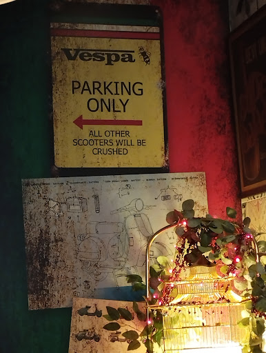 Decoración y ambiente: Un viaje al pasado Lo que realmente distingue a La Vespa 50 es su ambiente único. La decoración de los años 50, con las icónicas motos Vespa como protagonistas, crea una atmósfera nostálgica y acogedora. Los muebles retro y las luces cálidas te sumergen en un viaje visual a la Italia de mediados del siglo XX. Es como entrar en una película clásica italiana, donde el estilo vintage y el buen gusto se combinan a la perfección con la tradición gastronómica.