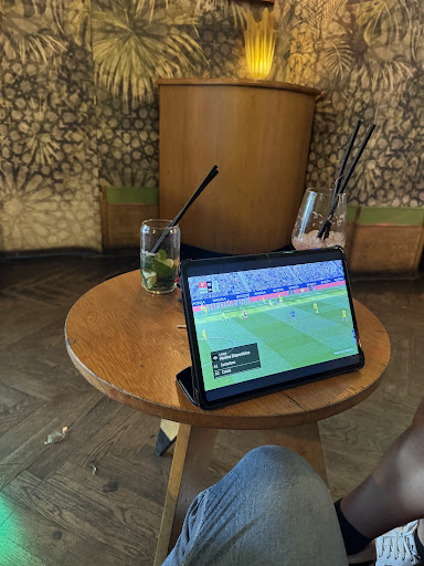Read moreNous sommes venus commander une sangria au bar. Un serveur nous a pris la commande puis à commencer à se presser derrière le bar. Il prenait les glaçons (nombreux) tellement vite pour les mettre dans le verre que son collègue n’osait pas approcher. Il a ensuite balancé quelques fruits dans chacun des deux grands ballons avant de précipitamment vider une bouteille de soda sangria dans chacun des verres. Si précipitamment que la moitié du contenu s’est retrouvée sur le bar..