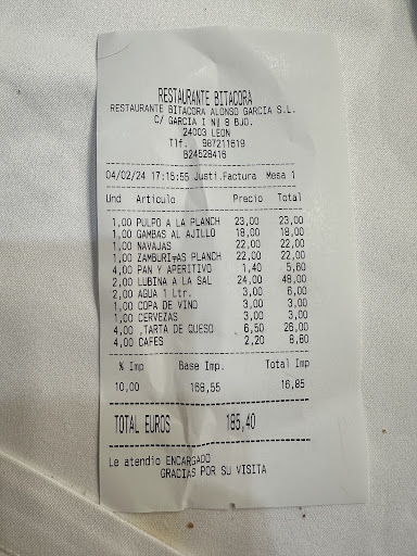 Read moreNo se puede negar que la comida está buena, pero el trato, la atención … no es buena ni se le aproxima. Una pena, teníamos reserva para 4 pax, llegó la primera pareja , y les puso cara rara cuando mencionó el nombre de la reserva, les dijo q esperaran fuera que no tenía reserva. Cuando llegué yo, ( estaba a mi nombre) pregunté por Beatriz pues es la persona que me recogió el encargo, que esperáramos que nos la montaban . ( después de enseñarle el mail de confirmación ) . Una vez en la mesa , una camarera jovencita de expresión agradable , otra camarera MUY Borde y malas caras , ( todos tenemos mal día ) pero la guinda del pastel , cuando nos traen la cuenta … y nos han cobrado 2 lubinas , lo que pedimos, pero nos trajeron una . Llamamos para poder comentarlo y a lo lejos que no se acerco en ningún momento; nos dice la camarera que se cobra por ración 24€, cuando pedimos, la otra camarera nos dijo que era una lubina para compartir, por lo que pedimos 2( una para cada pareja ) pues nos trajeron SOLO una lubina ( a la mitad ) . Y nos cobraron 2 … intento justificarse de que el precio era por cada mitad de lubina ( se lo debatimos porque hemos estado más veces ) pero sin DUDA esta ha sido la última. Pésimo trato, atención e intento ( conseguido...