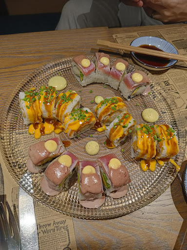 Sashimi de salmón con salsa ponzu, eneldo y ajo frito. Buenas piezas de salmón, bastante sabroso y buena salsa para acompañar.