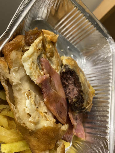De segundo pedimos dos pizzas con mitades diferentes y no sé cuál iba a peor. Una era de carne de kebab y eso sabía a bacalao, menos a carne a cualquier cosa. Y la otra con unos trozos de bacon súper gordos y ahí todas quemadas, literalmente estaban incomestibles.