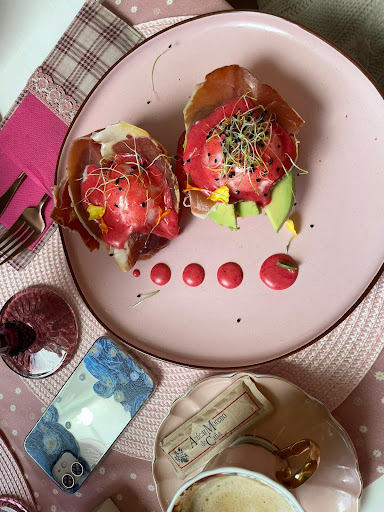 Read moreUn nuevo sitio en León siempre es bienvenido, abierto sábados y domingos, con propuesta brunch y música en directo (súper agradable). Han sabido crear un universo rosa muy cuqui que bien podrían haber negociado con Greta Gerwig. No resulta agobiante, hasta que llegas a la comida. En cuanto al servicio, destacar que una de las chicas fue muy atenta y agradable, además de traerme un muffin con una vela por mi cumpleaños. En contraposición, a su compañera no supimos pillarle el tranquillo pasando de majísima a borde cada vez que aparecía por la mesa. No obstante, agradezco que nos dejaran la mesa más tiempo del establecido al reservar. En cuanto a la comida, iba con cierto miedo ya que he notado la bajada de calidad en el Sonríe original con el paso de los años. Lamentablemente, mi miedo se confirmó y su propuesta de brunch me decepcionó. No obstante, me referiré solo a mi plato: jamón demasiado grueso (como comentado), aguacate no muy maduro y huevo poché muy mejorable, aunque sé que saben/sabían hacerlo. Resumiendo, han sabido trasladar sus puntos fuertes del Sonríe original, pero vuelve a fallar el equilibrio entre calidad y cantidad que tan bien balanceaban cuando no había cola para entrar. En un momento en el que algunos buscamos tener vida social con opciones medianamente saludables, el Sonríe se aleja de una propuesta que ellos mismos promulgaron en sus inicios trabajando con una nutricionista para la elaboración de su carta. Como seguidora del Sonríe desde los inicios, me habría gustado equivocarme y disfrutar de un brunch hecho con los estándares de 2017-2018, aunque tuviera que pagar un...