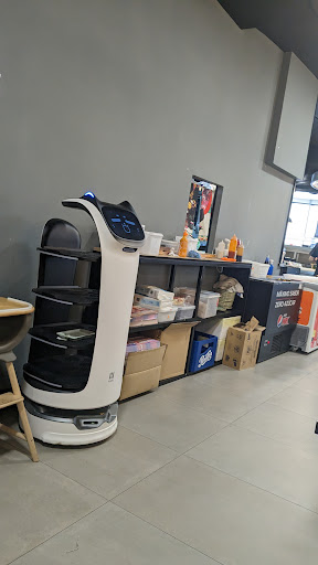 Nos gusta la comida asiática y en León hay varios restaurantes similares. Nos llamó la atención que los pedidos te los llevara a la mesa un robot 🤖 y nos decidimos a ir a comer. Eso había que probarlo. Para nuestra desilusión si que había robot, pero no nos trajo a la mesa ni un solo pedido 😂, aunque disfrutamos viendo como si se los llevaba a otras mesas, quizás solo tuvimos mala suerte. Nos decantamos por el menú tipo infinito en el que puedes pedir cualquier plato de la carta, la bebida no está incluida y hay algunos platos que tienen un sobre coste añadido (viene detallado en la carta). La forma de pedir es curiosa pq tienes una tablet en la mesa desde la que haces los pedidos. Deberían mejorar el interfaz porque es algo incómoda y poner un resumen de lo que pides o de lo q esta en marcha, yo creo que hubo platos que pedimos y no llegaron nunca, pero claro como pides tantos que al final no sabes cuantos ni que has pedido.