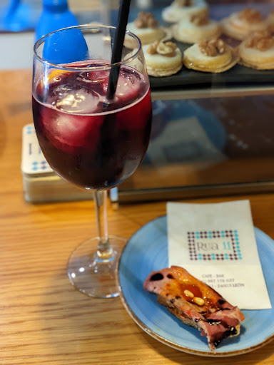 Dinner: Went back and tried a fuller meal... This place delivered. I had vermouth and shared a couple dishes with fellow pilgrims. We had morcilla, beef jerky (thinly sliced like jamon), and something else that I totally forgot. I just remembered how good the morcilla with apple sauce and pine nuts was. 😂