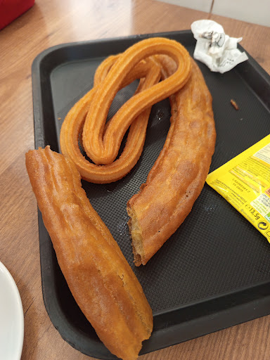 Read moreHacia mucho tiempo que no venía a este churrería y resulta que tienen una barra en medio de tal modo que por un extremo del local se pide el café, y por el otro las porras, lo que te obliga a pedir el café por un lado, salirte a la calle para entrar en el otro lado a por las porras (luego si vas solo y con mochila -como fue mi caso- tienes que dejar la mochila sola en la mesa en la que te habías sentado) y rezar para que cuando vuelvas no te hayan distraído tus objetos personales. La alternativa es irte con tus objetos personales y cuando vuelvas al salón no tengas donde sentarte. Incomprensible el diseño de este local, es de chiste. Un mal sitio, por...