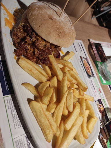La hamburguesa era grande, no estaba mala, pero me parece una mezcla totalmente sin sentido. El pollo muy crujiente pero no se nota el sabor del rebozado y la presencia del guacamole es totalmente simbólica. Todo ello por un mismo motivo: el chili con carne se come todo el sabor de la hamburguesa. Pienso sinceramente que si le quitasen un par de ingredientes a la hamburguesa, podría quedar una burger muy top. Pero en este caso, he de decir que me comí una hamburguesa llena de ingredientes donde solo uno tenía sabor. Una pena.