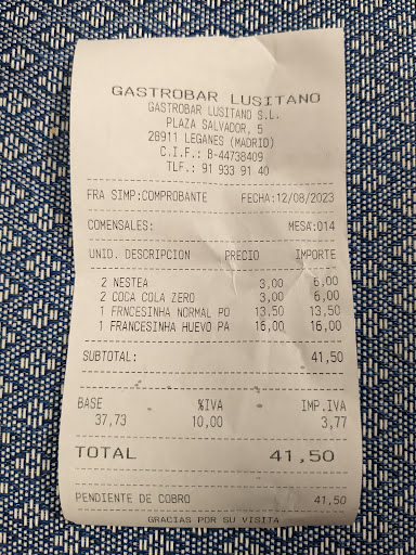 En total la cuenta se quedó en 41.50€ Podéis ver el consumo detallado en la foto del tiquet.