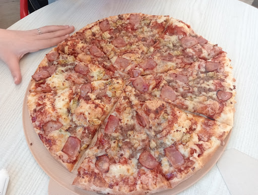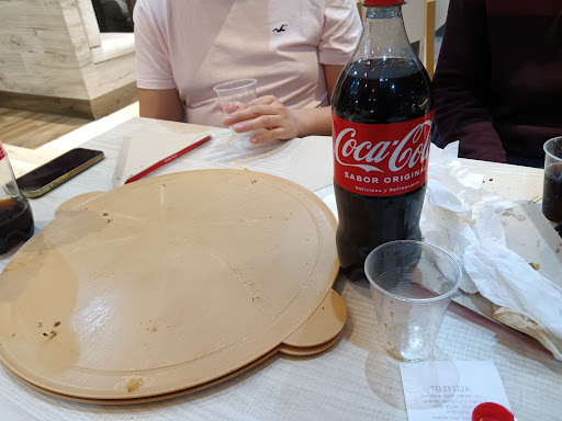 Pedimos la pizza por la app para pagar con datáfono en el local. Llegamos a la supuesta hora de recogida y solo cuando pagué empezaron a hacer la pizza. Al final estuvimos esperando allí casi 30 min a que nos dieran la pizza. Cuando estábamos saliendo nos dimos cuenta de que no estaba cortada y la pedí cortar. La cortó un tío que acababa de entrar de estar con la moto y aun no se había lavado ni las manos. La chica que nos atendió tampoco se lavaba las manos al entrar en cocina a hacer cualquier cosa. La vi con dinero en la mano y lo siguiente que hizo en la cocina es echar un manosear el queso quitándolo de una bolsa. El local estaba sucio. Las mesas solo las limpiaban pasando un paño que estaba muy sucio en menos de 2 seg. Sinceramente es el peor Telepizza que he ido. En resumen, nuestra pizza ha tardado 50 min en salir de cocina desde que la pedimos y la higiene brilla por...