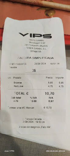 Read moreUn Vips distinto a los que solemos ir normalmente. Pides en el mostrador y recoges tu comida cuando esté lista, igual que un Burger King o un Mc Donald's cualquiera.