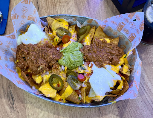 Nada mas entrar la decoración esta muy bien lograda y el espacio bien repartido. El problema llega con la comida… De entrantes pedimos unos Nachos “All In”, que al contrario de su nombre no lleva nada “In”, nachos muy pobres, con muy pocos ingredientes y mucha cebolla morada para darle color y poder disimularlo… Por lo menos se agredecen que fueran caseras. Las croquetas minusculas y a falta de un toque de sal, eso si, muy cremosas por dentro. Las patatas Gorgonzola bien, estaban ricas, crujientes y poco grasas.