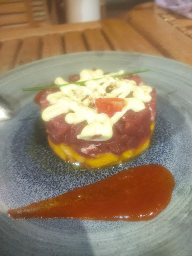 Read moreMarco una estrella porque es obligatorio, en mi opinión no merece ni eso. Nos confirmaron una reserva por teléfono, un día a una hora. Éramos seis adultos y un bebé de un año para el que nos habían confirmado una trona. Llegamos diez minutos antes de la hora acordada y, aunque la mayoría de las mesas estaban vacías, nos dicen que esperemos porque aun no es la hora (Islantilla, Julio, treinta y muchos grados y con un bebé). Nos llaman para sentarnos y nos cuentan que tienen un "exceso" de reservas y que como la nuestra es de las últimas que tenemos que sentarnos en dos mesas diferentes y, además, que no tienen trona porque la habían reservado antes otros clientes. Después de discutir durante unos diez minutos nos ofrecen la brillante solución de sentarnos en la terraza con una sombrilla mal puesta y, por supuesto, sin trona. Es decir, el trato mal y la gestión peor. La carta habla de fusión, mucha fusión por todas partes. Y realmente es cierto, nos pusieron una ensaladilla que tenía un huevo encima entre frito y roto, no sabría decir. En lugar de servir en la mesa, los camareros te dicen literalmente "pon eso por ahí", "pásale eso" "dame el plato ese" ¿Perdona? Reservas para comer en este lugar porque detrás está el nombre de un prestigioso hotel y resulta que en lugar de profesionales tienen a niños trabajando, haciéndolo lo mejor que pueden y saben, pero no tienen capacidad para más. Resumiendo mucho esta ha sido mi experiencia. Una decepción total y...