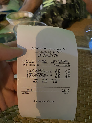Read moreFuimos la familia al completo hace unos días y la verdad es que la experiencia fue horrible. Comencemos. Teníamos una reserva para ocho personas y, al llegar chiringuito vimos dos mesas preparadas para dichos comensales. Le comentamos a una de las camareras si no le importaba que nos pusiésemos en la de la esquina, ya que al ir con tres niños, sería mejor para que no molestasen al resto de mesas. Nos dijo que sin problema. Una vez sentados, y mientras nos tomaban nota de las bebidas, llegó el dueño y nos dijo que nos teníamos que levantar y cambiar de mesa, ya que esa no era la nuestra, y punto. De muy malas maneras e incluso metiéndose en nuestras conversaciones. Increíble. Lo sensato hubiese sido irse, pero en agosto, 15:30, sin reserva en ningún otro lado… La comida muy normalita y con unos precios totalmente desorbitados. Para rematar, uno de los postres que pedimos fue un almendrado, cual fue nuestra sorpresa al ver que era de Hacendado (Mercadona, caja de 6 por 2,40€) y nos lo cobraron a 3 euros jajaja. Muy...