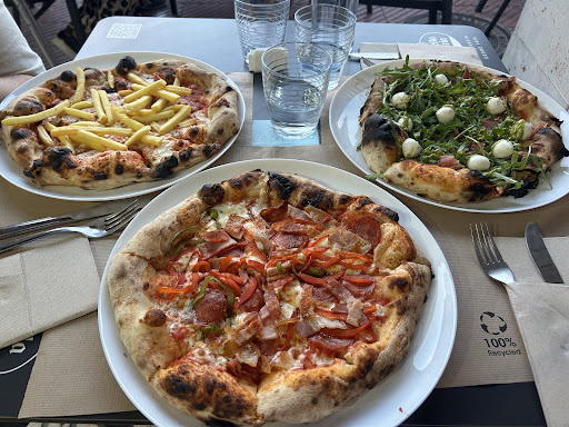 Read moreCreo que tienen de las mejores pizzas que he probado en mi vida, son estupendas, tienen una masa excelente y ligera y son suficientes para una persona en cuanto a su tamaño y contenido. En la imagen están la Patatosa (10€) (la de patatas fritas claramente), la Picantina (13€) y la que tiene rúcula y más verduras es la Bella Italia (14€). Todas estuvieron deliciosas (sí, incluida la Patatosa, está muy bien) y hasta tienen Pizza Nutella según se ve en la foto, la cual no compramos pero me dicen mis amigos que si la saben hacer está estupenda. El bar tiene muchas mesas tanto dentro como a la terraza y había mucha gente cuando llegamos. Se pueden hacer reservas sin problema. Los camareros son encantadores, muy amables y profesionales, super top. Aunque sólo haya ido una vez durante mi breve estancia en Lerma, es un sitio mítico. Si pasas por Lerma tienes que probar sus pizzas. Tienen muchas más de las que aparecen aquí, desde 4 quesos, opciones con pescados, hasta Calzone (que es como una pizza doblada por la mitad muy rica). Aunque pone que cobran 0,50€ por servicio de mesa y cubiertos, a nosotros no nos lo cobraron (no sé si fue error o no pero nos dimos cuenta cuando ya nos habíamos marchado, yo les hubiese pagado incluso más sin problema). En fin, 5 estrellas, les daría más...