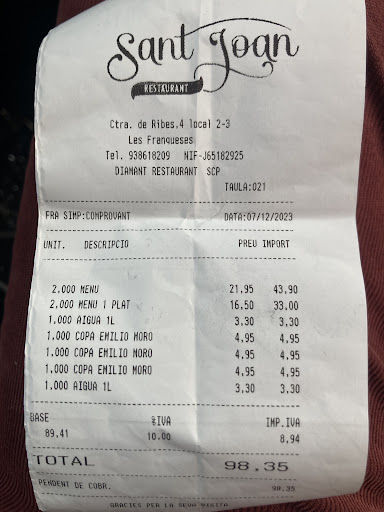 Read moreHola ,fins ahir divendres estavem super contents amb aquest restaurant .Però ahir vem venir a fer un menú com moltes vegades i la nostre sorpresa va ser uns plats molt escassos de menjar .Un primer plat ous al plat amb puré de patates i butifarra esparracada ,doncs la veritat la butifarra casi no s’apreciava . Després un segon plat tenasco dehosat al plat hi habia un troç de ternasco de uns tres dits i de güarnició mitja patata bullida i un primer d’ensaladilla amb un plat allargat que possiblement cabien dos cullerades soperes d’ensaladilla .Una altre cosa ens va crida l’atenció la ració de pà sempre habia sigut pà més artesà i ahir era de baguette.Si que és veritat que els postres eren molt bons com sempre i el café. Però son client habituals i lo d’ahir no...
