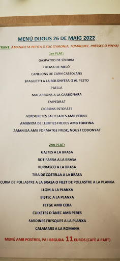 Read moreMenú correcte a un bon preu: 13,50€. Molts primers i segons a triar. Postres i beguda, vi i gasosa, inclosos. Els que han triat patates d'Olot en voldrien una més. Local familiar, sense luxes, estava molt ple quan hem arribat (Dissabte a les 15:30), sort que teniem reserva. Veniem de fer una ruta BTT i amb molta gana, ens haguéssim menjat els que han portat i més, però...