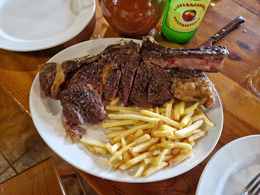 Read moreLlegamos a la sidreria sin reserva. Nos atendieron rapidamente, ya que no había nadie esperando. Elegimos el menú de sidreria. Debo decir que fui yo mismo quien tomó la decisión de comer en esta sidreria. Lo catalogué como comida casera en un lugar idílico. Nos sentamos a comer y la sensación era buena. Pena por servir la sidra en botella, pero bueno. Si la comida merece la pena... La tortilla de bacalao y chorizos estaban de 10. Lastima al llegar el chuletón y ver las patatas congeladas. Congelada se quedó mi conciencia después de dar la murga tanto tiempo con la comida casera y encontrarme las patatas McDonald's. La verdad con lo buena que estaba la carne yo no le pondría esas patatas que no suman, sino lo contrario. Es cierto que la cantidad no era mucha, pero quizás el precio podía compensar la carencia. Comimos la copa de la casa. No sabía dónde meterme. Era un flan vertido en una copa tras una lata de frutas en almíbar con una bola de helado y nata en spray. Vamos, mi recomendación de casero y de calidad. Cuando llegó la cuenta, la cantidad (muy caro) hubiese sido razonable si los platos principales hubiesen sido más copiosos. No habría ni rastro de las patatas fritas congeladas y los postres fuesen caseros. Una lastima grandísima cuando el fundamento principal del menú estaba genial y quedo a la sombra de unas patatas congeladas y un postre lamentable. Siento la reseña negativa, llevo mucho tiempo valorando si escribirla o no pero aquel día me sentí fatal después de elegir un sitio idílico con comida casera, estar dispuesto para pagar y recibir un menú muy por debajo de lo que...