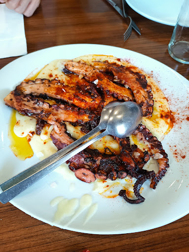 Read moreEntre malo y peor. Bajada descomunal de calidad y cantidad, cogimos mi pareja y yo el menú fin de semana pensando que era individual porque no indicaba en ningún momento que eran platos a compartir, tardaron una burrada en servirnos cada plato. Llegamos a las 14:30 y salimos a las 17:00. Después del chasco que nos llevamos al enterarnos de que eran 3 entrantes a compartir y un principal pedimos, pulpo. Escaso una pata para 2 con un poco de puré, unas gambas muy ricas y unos insipidos canelones. Lo peor fué el plato principal una mediocre y seca merluza rebozada rellena de carne de txangurro krisia y un bacalao que tuve que devolver por salado y por un sabor a pescado pasado que echaba para atrás, me lo cambiaron por un entrecot que no me sabía a carne roja ya que se encargaron de bañarlo en una salsa de mostaza y mantequilla y lo dejé xq ya no tenía ganas de comer para no disfrutar nada. Los postres uno cara otro cruz. La torrija muy mala era un Brioche bañado en leche con azúcar y helado pero la tarta de queso si que estaba muy buena. Al menos me invitaron al café por la tardanza brutal en...
