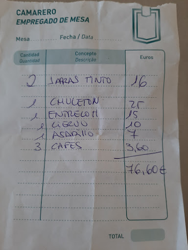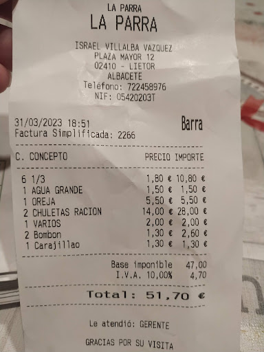 Del disgusto no saqué ni fotos de los platos, pero de la cuenta sí. 76€ para tres personas. No nos importa pagar cuando la calidad y cantidad acompaña, pero en La Parra no es el caso. Nos fuimos de...