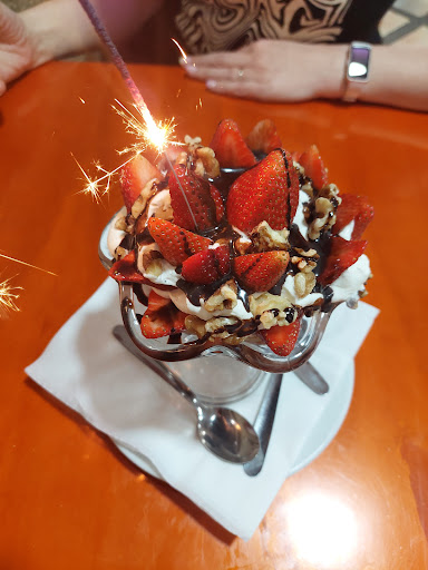 Read moreParamos a repostar y en la gasolinera nos recomiendan varios locales para comer, y casualmente elegimos este. Nada mas entrar ya nos llamo la atención la actitud positiva de los camareros, tanto los que atendian las mesas como el de detrás de la barra. Mención especial a una chica que nos dió un trato espectacular. Para dos personas pedimos 4 consumiciones, 2 cervezas y 2 claras, que llegaron acompañadas de sus correspondientes tapas. Tras hablar con la camarera, nos propuso una opción del menú con la cual te servían 10 tapas por 10 euros. Todo un acierto. De postre pedimos una copa de nata con fresas, nueces y sirope de chocolate. Expectacular. Me llamo la atención que prepararan carajillos quemados, típicos de la zona de Castellón y Valencia, y lo probe de anís, ya que normalmente son de ron o coñac. Estaba bueno. En total: 4 consumiciones con sus tapas; la opción de 10 tapas por 10 euros; el postre; un cortado y un quemado 26,70€