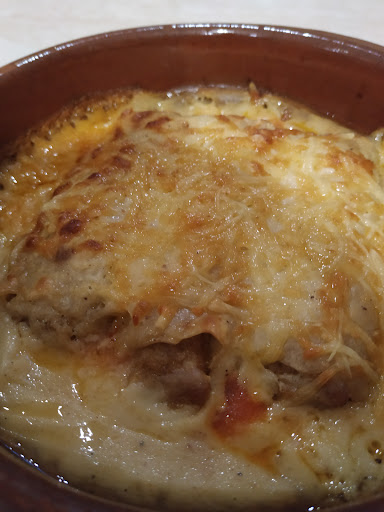 Pues me gusto mucho, caímos allí por recomendación y la verdad que muy bien. Comimos de menú, mi marido un arroz caldoso de pollo y verduras y un cordon bleu con patatas y yo rabas de calamar con un poco de lechuga y una cazuela de bacalao con patatas. Tenían varios menús, no recuerdo del todo los precios, pero estaban entre los 15-16€ más o menos. El que cogimos nosotros fue el de 15€ y luego había otro que era con solomillo o pescado (dorada?)que era un € más creo...de los precios no estoy muy segura, no lo recuerdo, pero me parecieron correctos en cuanto a calidad y cantidad. Estaba tobpueno. Habían más cosas para elegir en el menú de primero y de segundo y también de postres. El local me gustó mucho también, un estilo de maderita para tomar cervecitas por la tarde, con guitarras de Bruce Springsteen y Paul McArtney... El camarero, que creo que era también el dueño, muy amable y servicial. Una pena que me pille lejos de donde vivo, si no, seguro que iría...