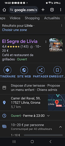 If you are in Llivia, you absolutely have to eat here! The menu del dia is only 14€ with wine, bread, dessert, a starter and a main course. I had the ensaladilla and, unlike at most restaurants, it wasn’t a potato salad with a few veggies; it was a veggie salad with a few potatoes. Delicious! My second course was fish in sweet pepper sauce with a boiled potato drizzled in pesto. Also amazing! And finally tiramisu for dessert. I just spent a week in Barcelona and this was better than any meal I had there and it was way cheaper. Don’t let the humble appearance of El Segre fool you, the food...