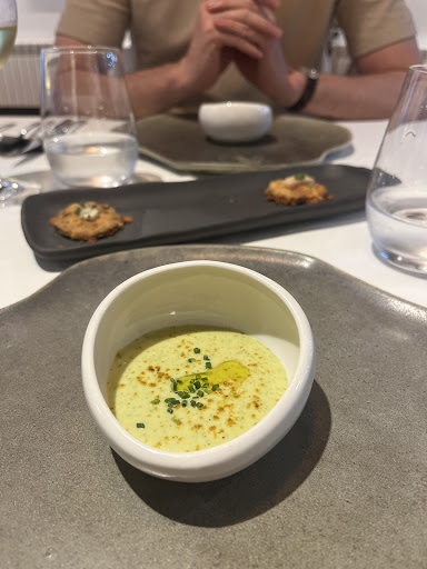 Read moreFuimos el domingo por la noche: todo el restaurante para nosotros hasta que llegó otra pareja. El servicio: inmejorable. Personal atento, amable y muy pendiente de ofrecer explicaciones detalladas y de hacerte sentir a gusto. La comida: espectacular. Nos decantamos por el menú degustación de 55€, me parece una fantasía de precio por lo bien que comimos. Es un menú que incluye 4 platos y 2 postres, simplemente estaba todo delicioso. Empezando por el tartar de atún con pan de brioche, clara frita y mayonesa de kimichi, pasando por la crema de calabaza con espuma de cítricos y ostras (se deshacían en la boca), luego un suquet de rap y finalmente secreto con verduritas (a mi me hicieron una adaptación de vieira con cama de parmentier de patata), simplemente espectacular. Para finalizar: mousse de castaña con bizcocho de pimienta y pera confitada (brutal combo) y un arroz con leche con un crujiente por encima que estaba de locos. Simplemente una experiencia para repetir. Mil gracias...