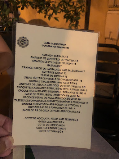 Vam estar sopant la nit de Sant Jordi. Teniem moltes ganes d'anar-hi, ja que som del poble i mai haviem pogut per tema horaris. Finalment vam poder gaudir del lloc. Ambient molt agradable amb una selecció de tapes per compartir molt Bona i una oferta de vins molt extensa. Nosaltres vam menjar una taula de formatges i un pernil ibèric molt bo! Les racions segons el meu parer, són generoses i la relació preu/qualitat és molt bona. La única pega que puc posar és que el servei va ser una mica lent, però per mi no té importancia ja que quan vaig a sopar no tinc pressa; el que sí, podrien posar unes olives o alguna coseta per anar fent mentre esperes, però segur que repetirem i ho...