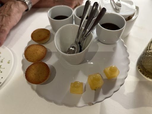 The first dessert of pear sorbet with lemon and thyme was good however, the 2nd dessert which was basicly a poor vanilla ice-cream and hot chocolate sauce, was excessively sweet and fell far below my expectations. A lacklustre ending to an already disappointing meal.